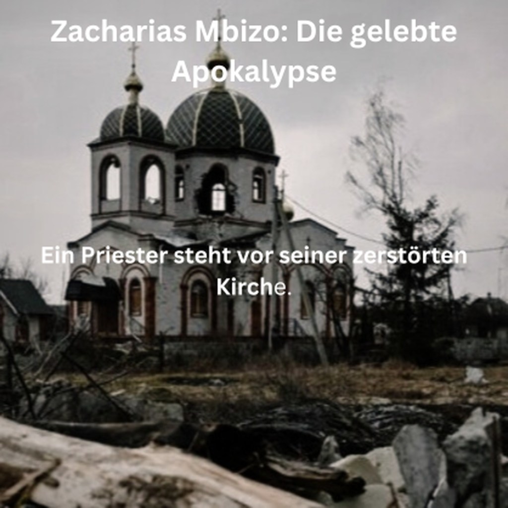 Ein Priester steht vor seiner zerstörten Kirche.