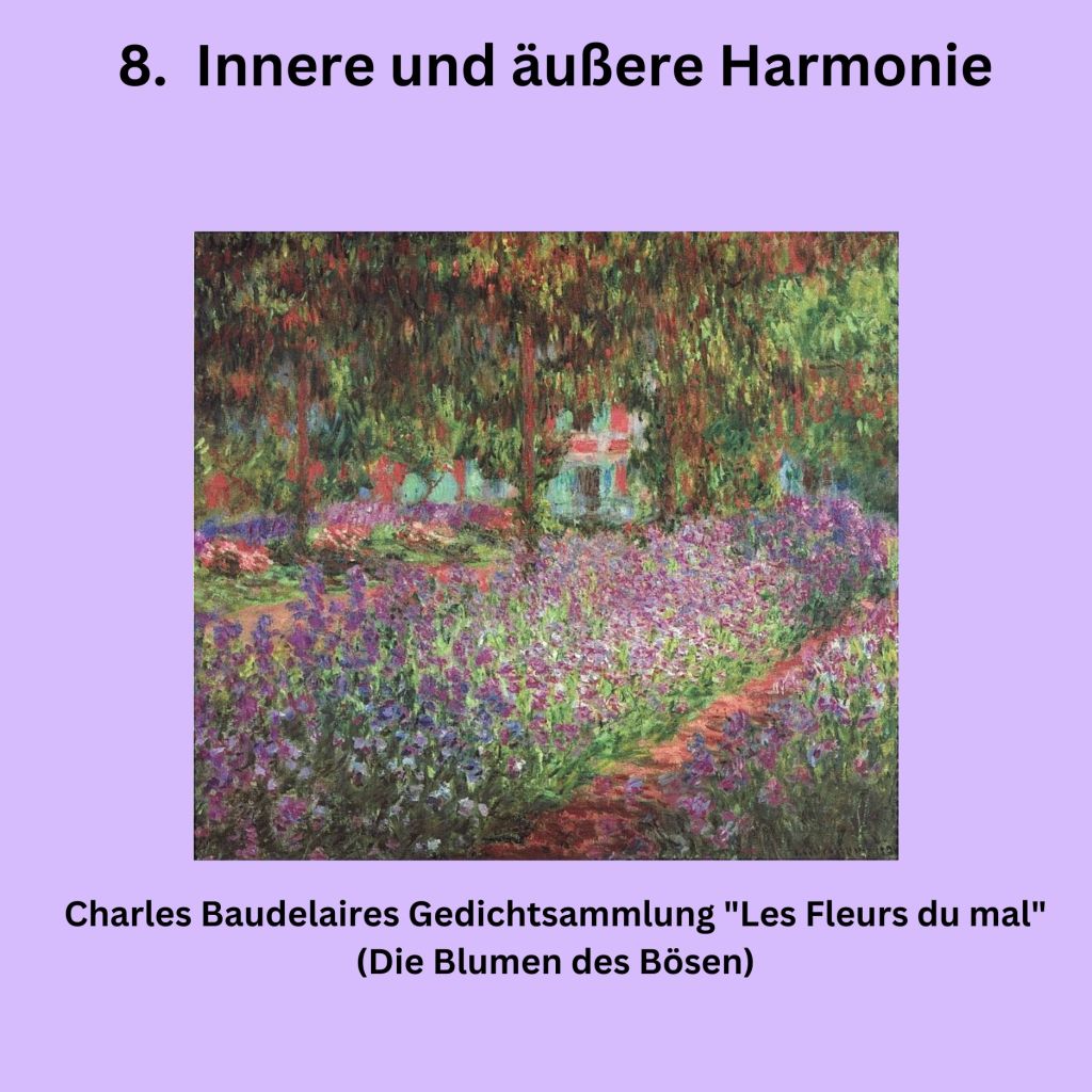 Das „Schöne“ war für Baudelaire ein Ausdruck für die vollkommene Harmonie. Diese in sich selbst wie in der Natur zu empfinden, war für ihn auch eine Voraussetzung für „harmonische“ soziale Verhältnisse.