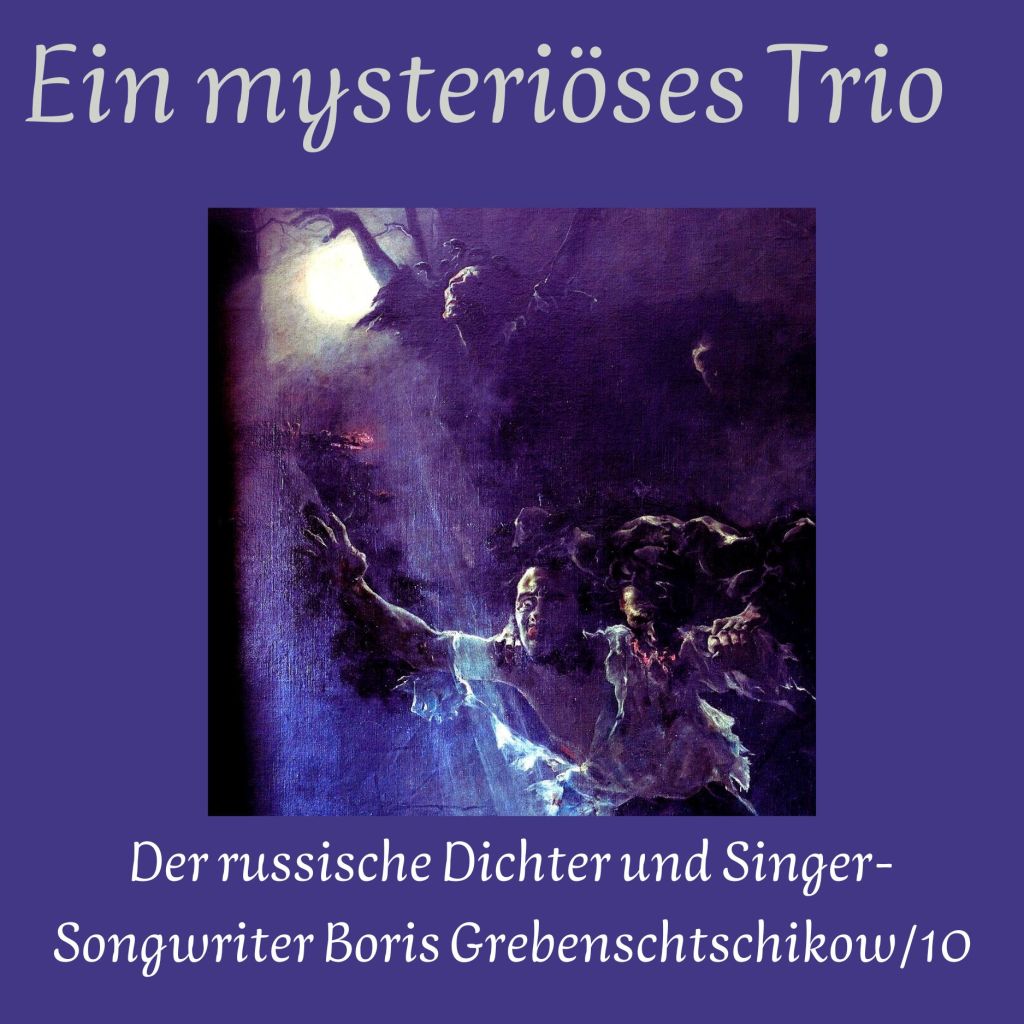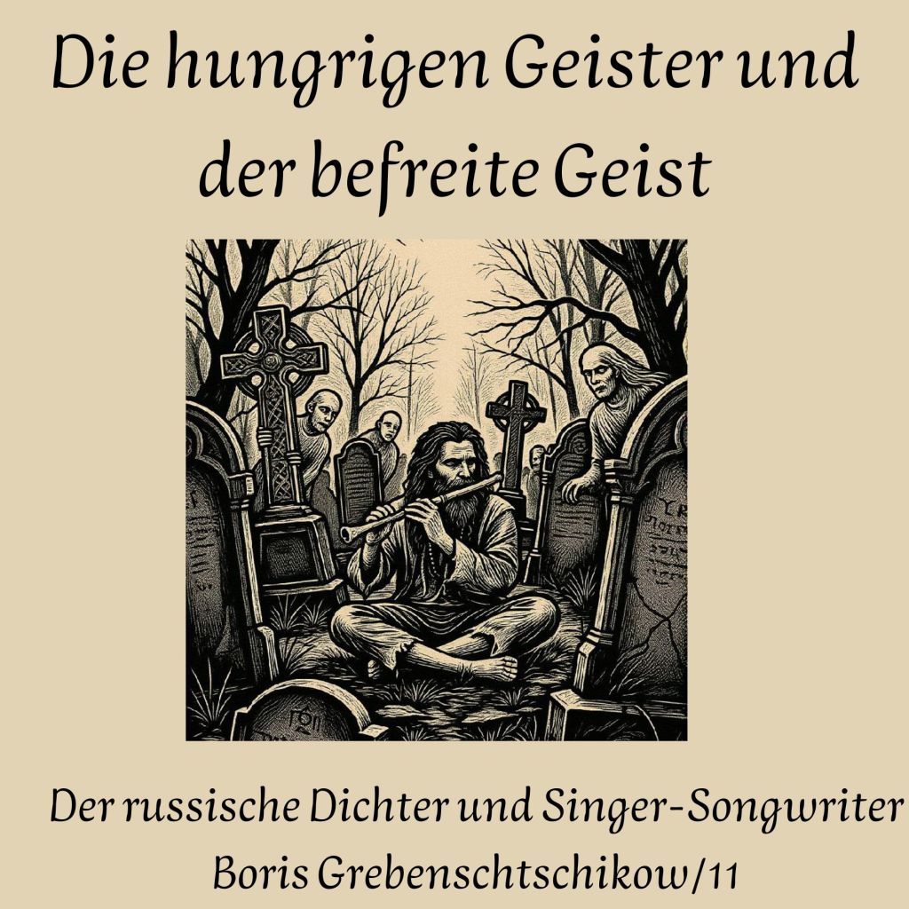 Bilder: Iwan Martschyk: Boris Grebenschtschikow beim Atlas Festival (Atlas Weekend) in Kiew (Wikimedia commons). 1.) Iasaffa: Sterntaler (Pixabay); 2.) Kyraxys: Zauberer (Pixabay); Peter H. (Tama66): Verfallener Ort (Pixabay); 4.) IH: Wolf und Rabe (AI); 5.) Arturo Souto (1902 – 1964): Die vier apokalyptischen Reiter aus der Offenbarung des Johannes (1937); Wikimedia commons; 6. Alexej Sawrassow (1830 – 1897): Die Wolga (1874); Kaluga, Museum der Schönen Künste; Wikimedia commons; 7. Wiktor Wasnezow (1848 – 1926): Fliegender Teppich; Nischni Nowgorod, Staatliches Kunstmuseum (Wikimedia commons); 8. Amye Petersen: Auge vor Landschaft mit Bäumen (Pixabay); 9.) Denis Fomin: Geheimnisvolles Portal auf einer nächtlichen Straße (Pixabay); 10.) Bolesław Barbacki (1891 – 1941): Erinnye (1907); Wikimedia commons; 11.) IH: Hungrige Geister-AI1 12.) Joe Puengkaew: Buddhakopf in einem Bodhibaum (Pixabay)