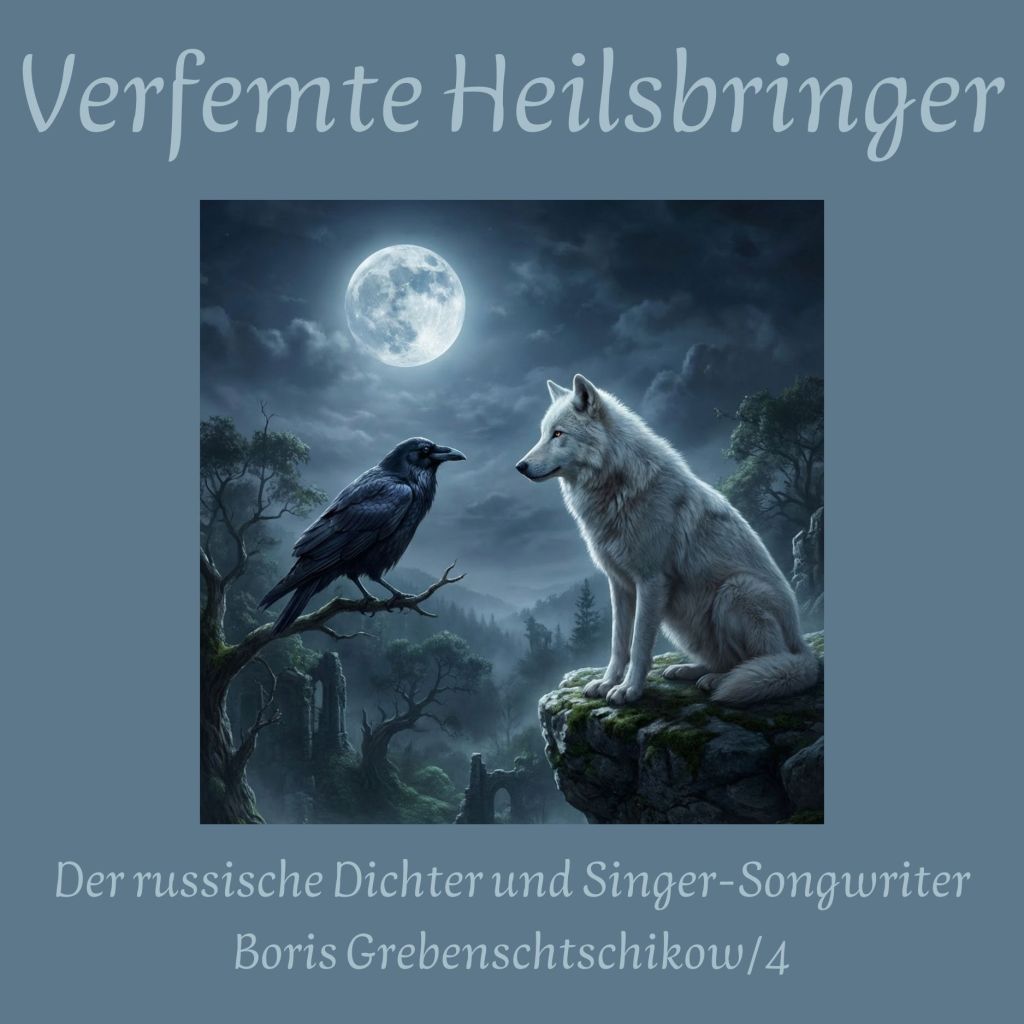 Bilder: Iwan Martschyk: Boris Grebenschtschikow beim Atlas Festival (Atlas Weekend) in Kiew (Wikimedia commons). 1.) Iasaffa: Sterntaler (Pixabay); 2.) Kyraxys: Zauberer (Pixabay); Peter H. (Tama66): Verfallener Ort (Pixabay); 4.) IH: Wolf und Rabe (AI); 5.) Arturo Souto (1902 – 1964): Die vier apokalyptischen Reiter aus der Offenbarung des Johannes (1937); Wikimedia commons; 6. Alexej Sawrassow (1830 – 1897): Die Wolga (1874); Kaluga, Museum der Schönen Künste; Wikimedia commons; 7. Wiktor Wasnezow (1848 – 1926): Fliegender Teppich; Nischni Nowgorod, Staatliches Kunstmuseum (Wikimedia commons)